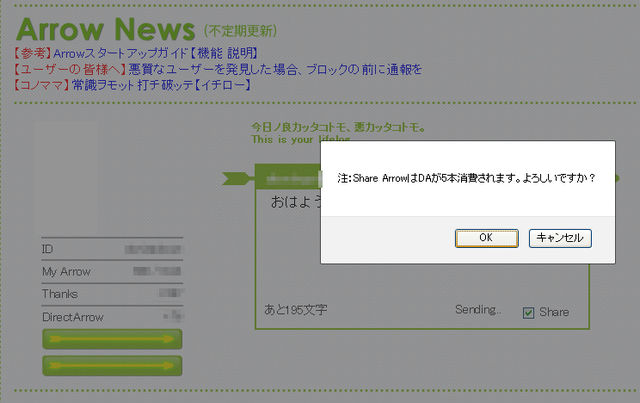 そのDAは、TwitterのDMとは違い、数が制限されている。その上シェアアローを放つ際は、このDAを5回分、消費するというわけです。