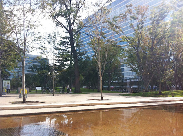 残念ながら芝生は養生中で芝生の上には立ち入れないが、開放感はバッチリだ。