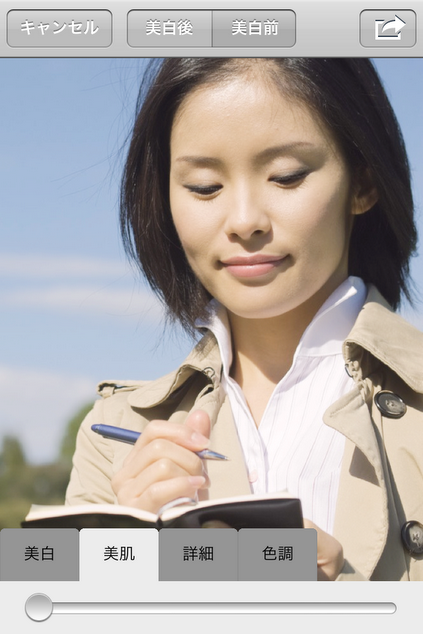 なお、Androidにも同樣にカンタンに一発で写真を美白処理出来るアプリ、「美白カメラ」があります。