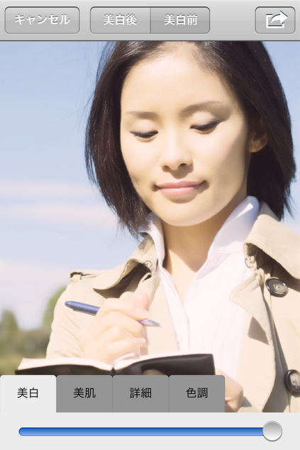iPhoneで撮った人物写真を、一発でカンタンに美白処理してくれるアプリの紹介です。