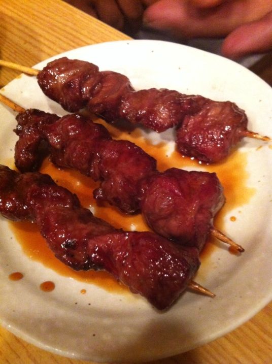 カシラ(タレ)、つくね(味噌)。