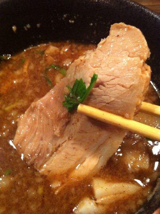 でかいチャーシューが入ったつけ汁は、定番の味ながらも、濃厚で、節の香りが強い。