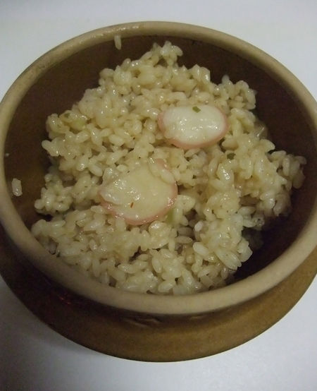 さて、そのレシピどおりに炊いたどん兵衛汁で炊く釜めし。