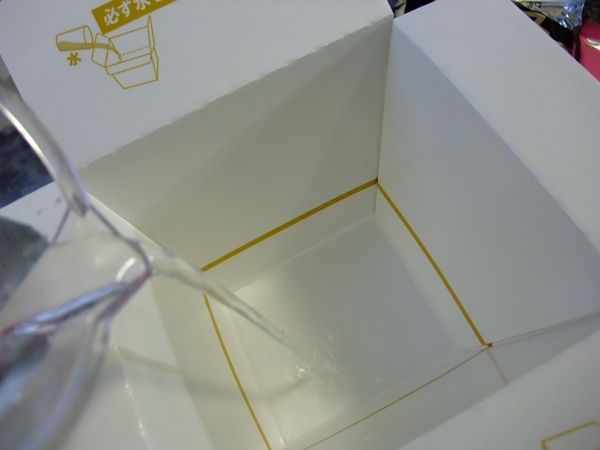 カップでもあるパッケージに、内側ラインまで水を注ぎ、