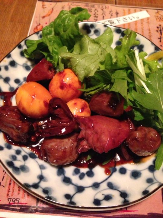 甘辛く煮詰めた鳥のモツは、独特の味。まさにB級グルメ。