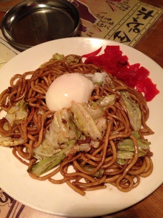本来は目玉焼きだったはずだが、この店では温泉玉子が乗り、割って絡めて食べる。