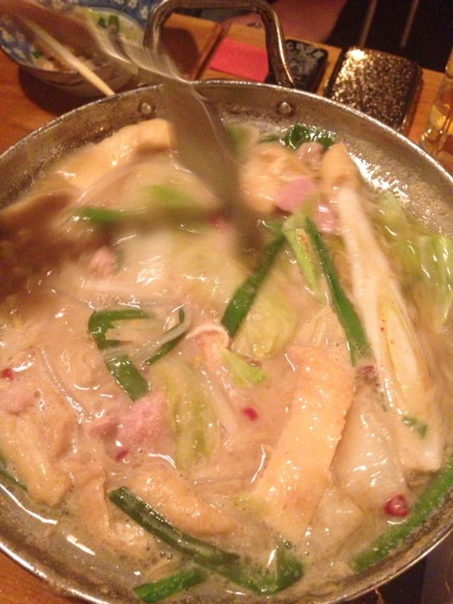 あれだけふんだんに盛ってあった野菜が、モツと共にくったりと煮込まれ、容積がだいぶ減りました。
