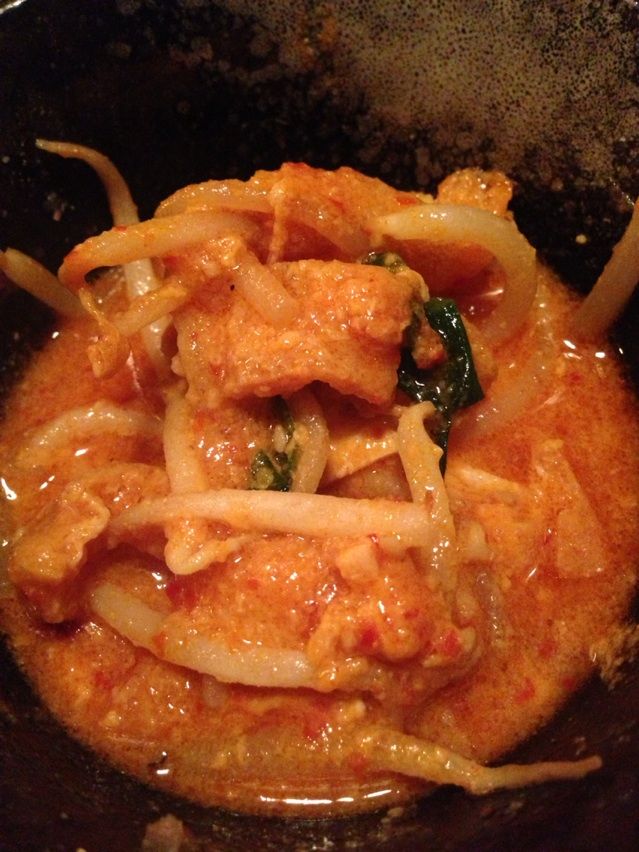 (煮込む前の写真で、一味や輪切り唐辛子が振りかけられていたのがわかると思います。)