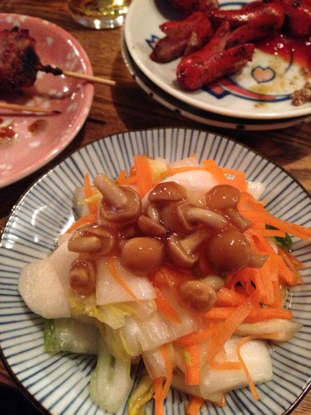 もつ焼きと赤ウインナーを食べて油っこくなった口を、漬物やビールですすぎながら、また油で汚す。