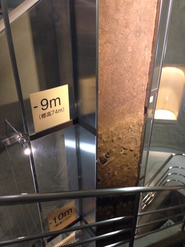 こうした各展示室に降りる階段には、地層模型が貫き、関東の標準的な地層の様子を知ることが出来ます。