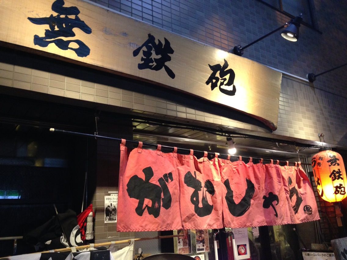 「無鉄砲」の看板の下に「がむしゃら」ののれん。