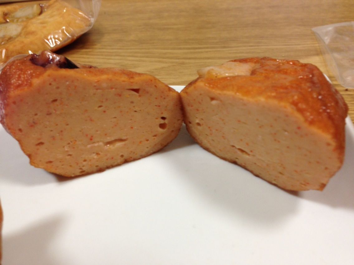 断面に見える赤いつぶつぶは一味。