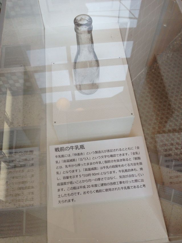 こんな、「戦前の牛乳瓶」なんて展示もありますよ。