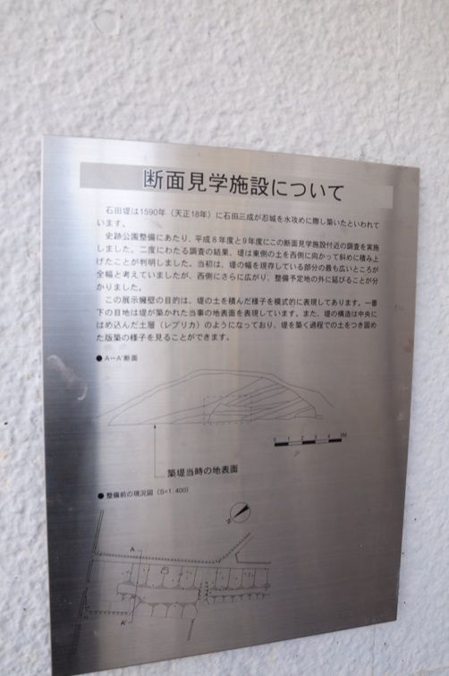 また公園内には、この足元の部分の石田堤の断面を展示しています。
