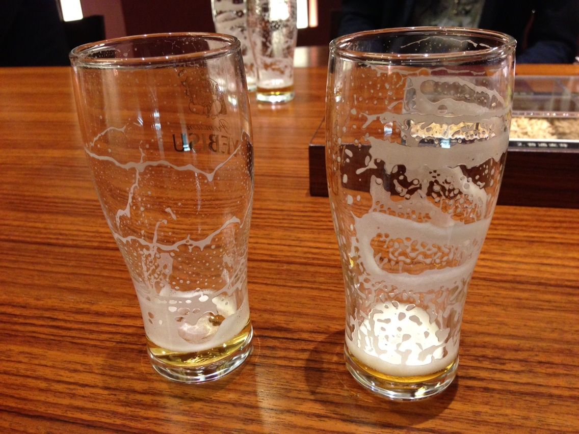 皆のグラスが空く頃を見計らい、2杯目「琥珀ヱビス」生が届きます。