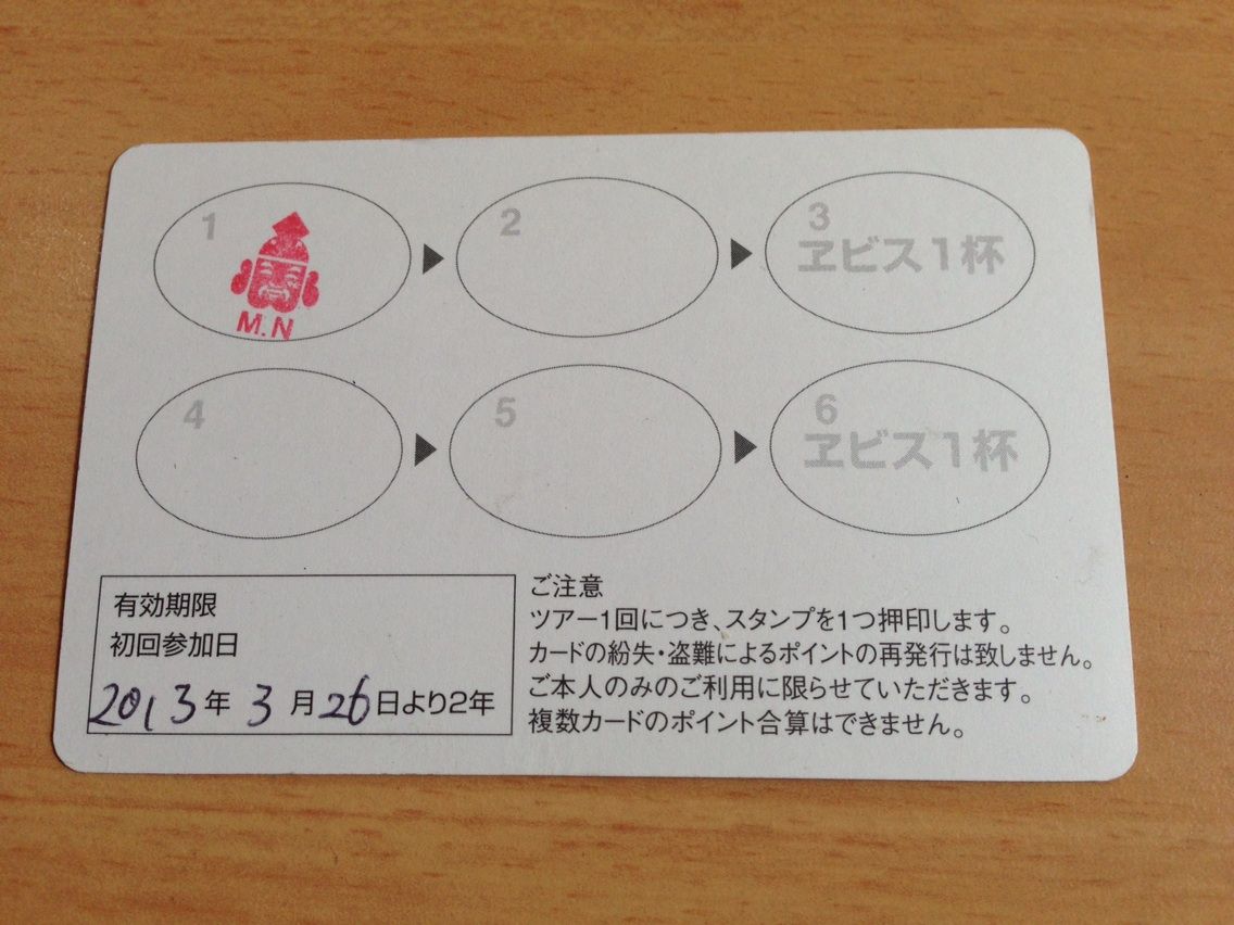 ツアー終了後、会員カードをいただきました。