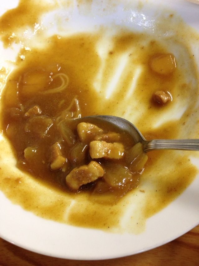 レトルトなんじゃねえの?というくらいオーソドックスな普通のカレールーをかけ、混ぜた味。