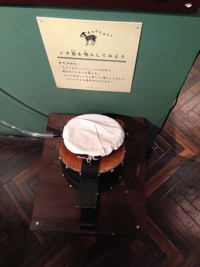鹿の鳴き声に似た「シカ笛」の展示、