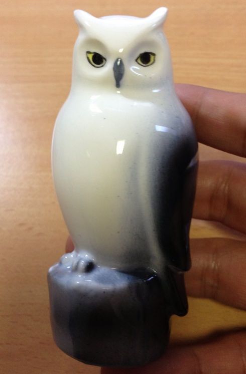 てのひらサイズのフクロウ(オオコノハズク)の置物。