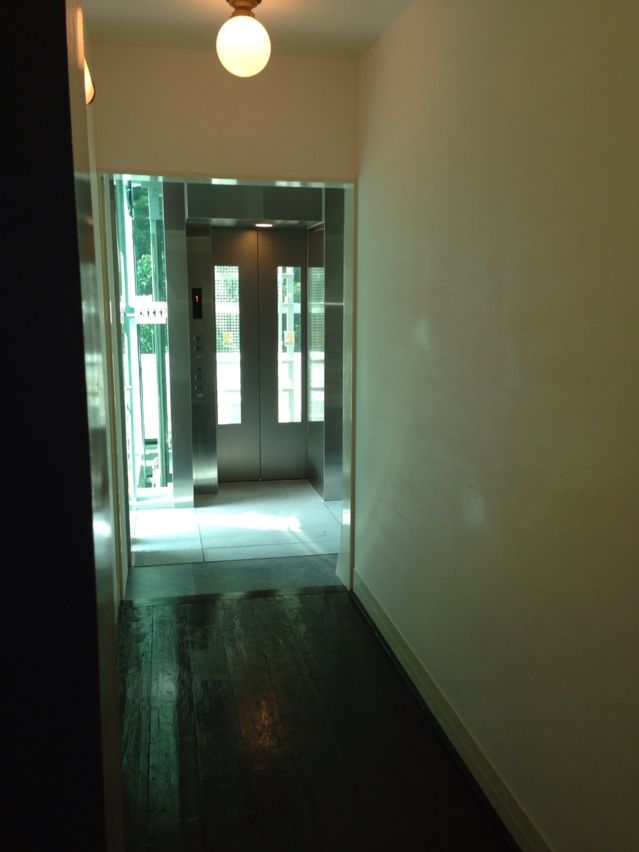 壁の一部を取り払い、エレベーターやトイレ部が増築されているんです。