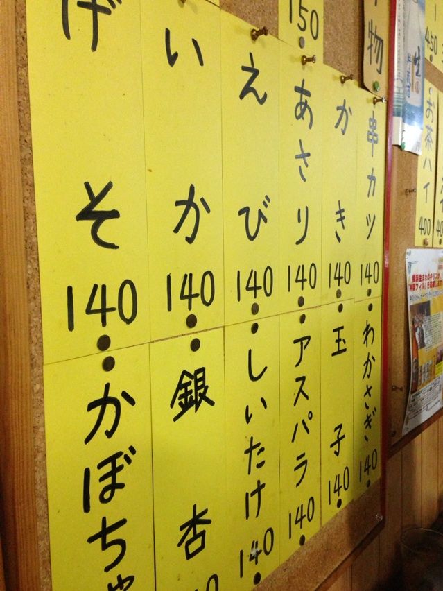 串カツの主なラインナップはこんな感じになってます。