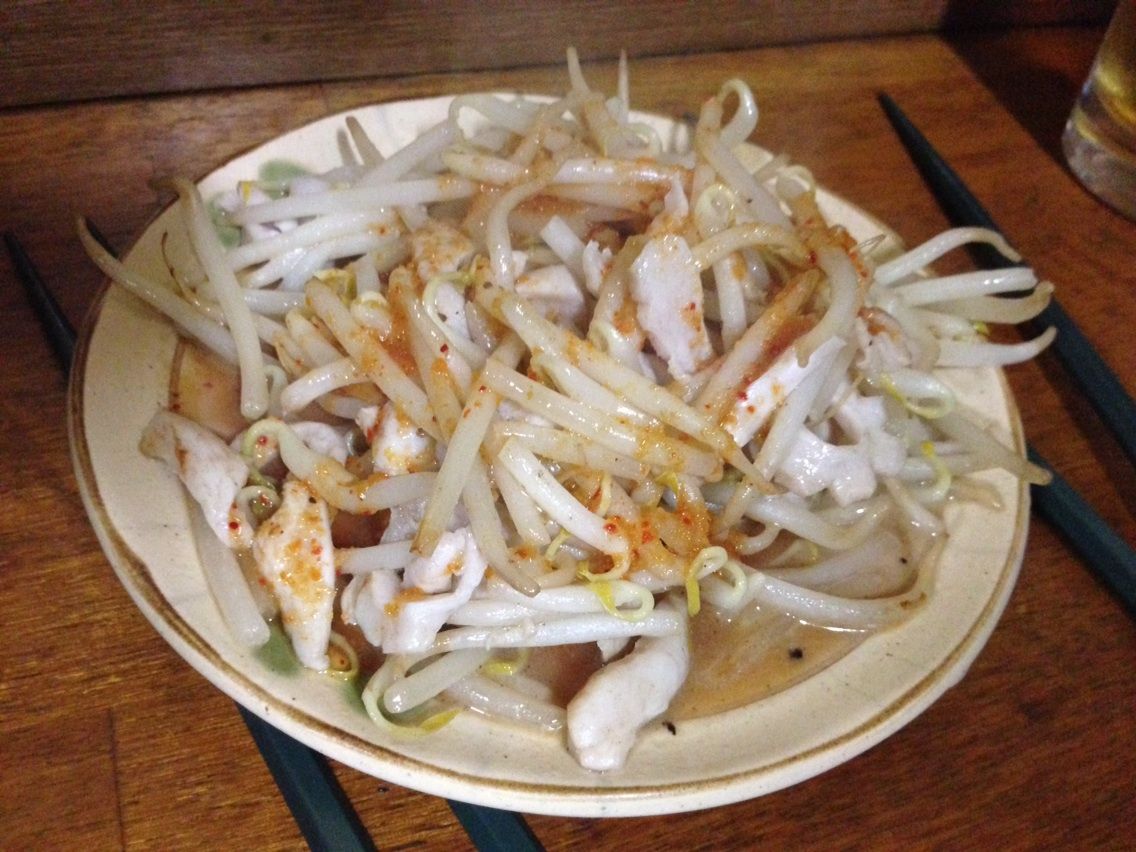 豚の胃袋とモヤシを、「辛口」の源であるニンニクしょうゆタレで炒めたものが、チートの正体。