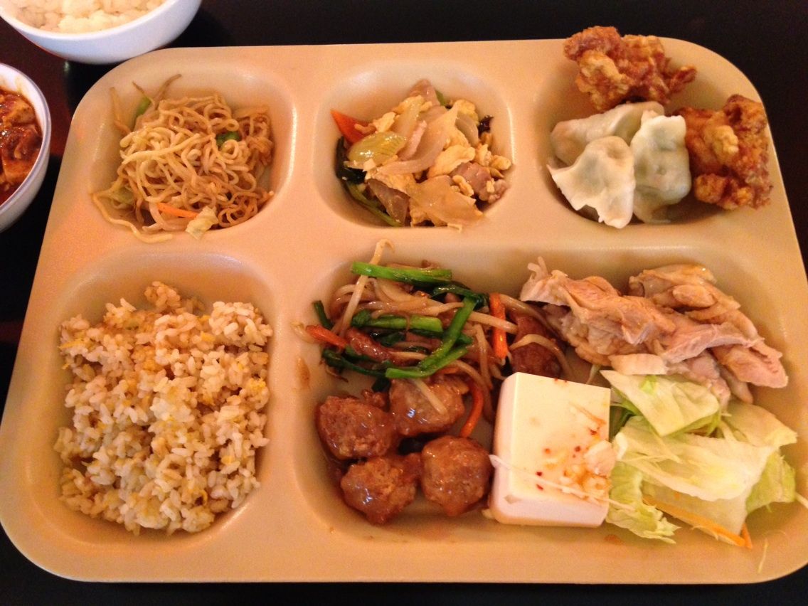 食べたいものをどんどんトレーに盛っていたら、こんなことになりました。