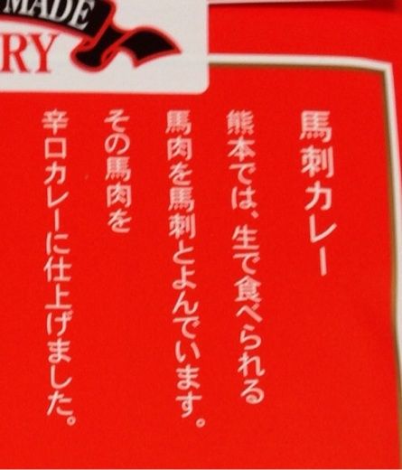 つまり馬刺し用の馬肉を使ったカレーだから、馬刺しカレーなんですよ、と。