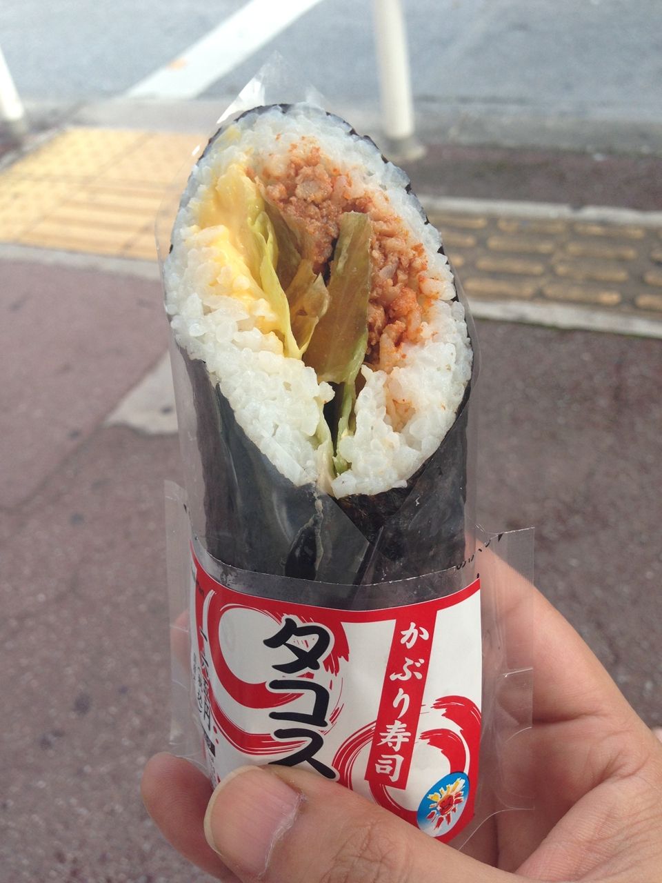 あと、沖縄のコンビニの手巻き寿司は、ぜんぶこのように