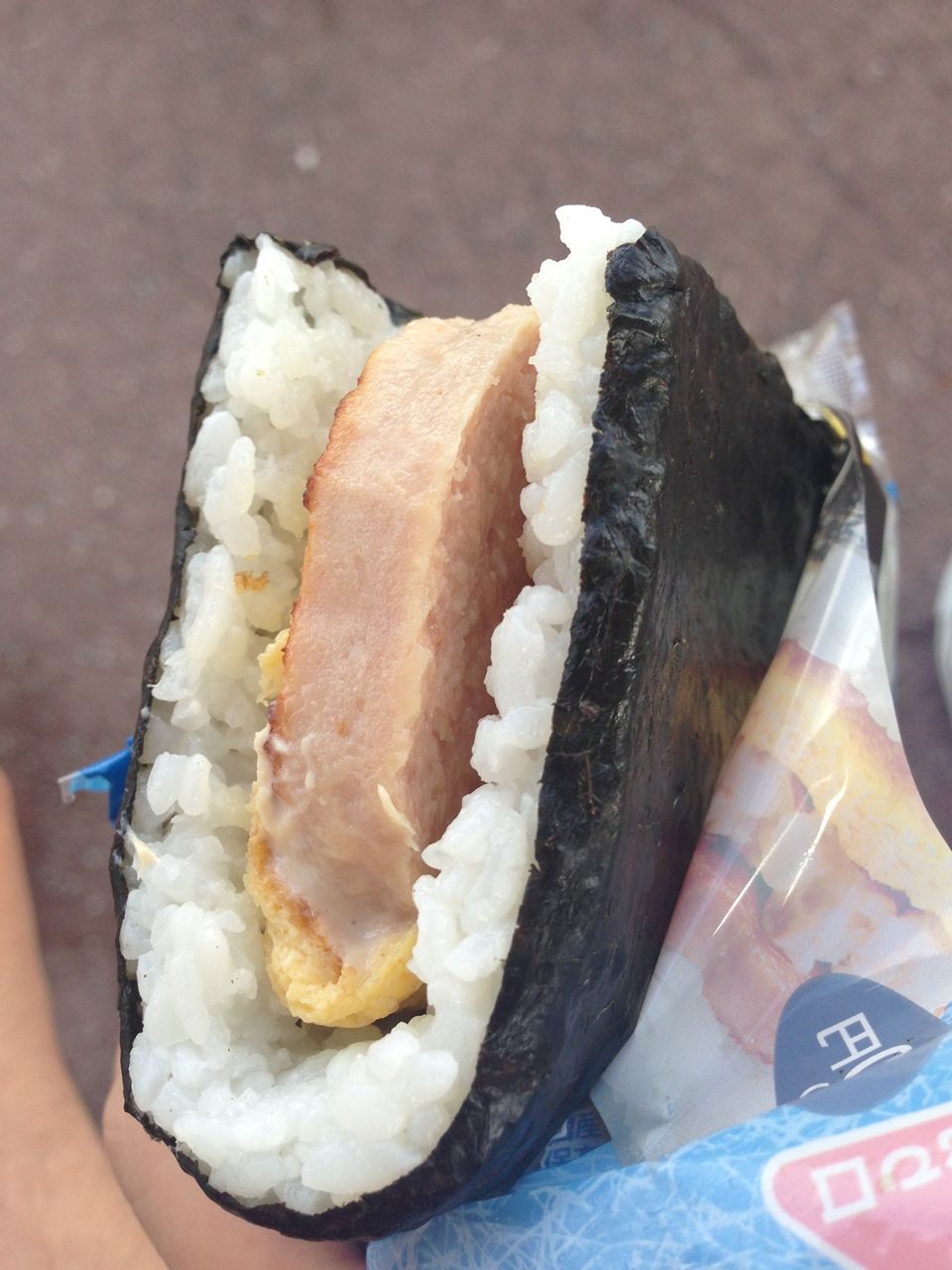 こちらはポーク玉子とシーチキンのおむすび。