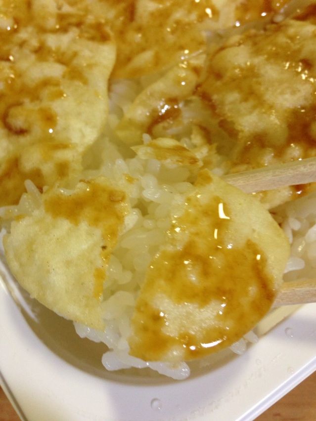 ゴハンの湯気、熱さでポテチのパリザク食感も薄れて、いい感じになるんじゃ……