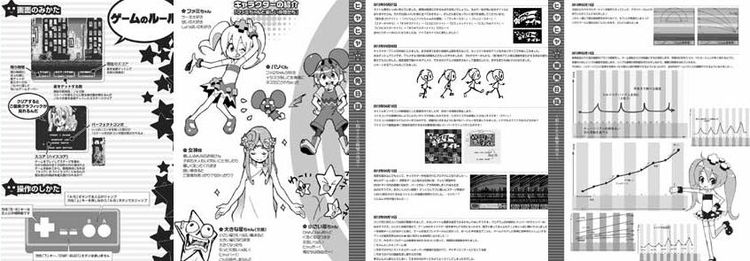 ファミコン攻略本デザインの同人誌は、そのイメージどおりゲームの攻略法がデータ込みで満載。