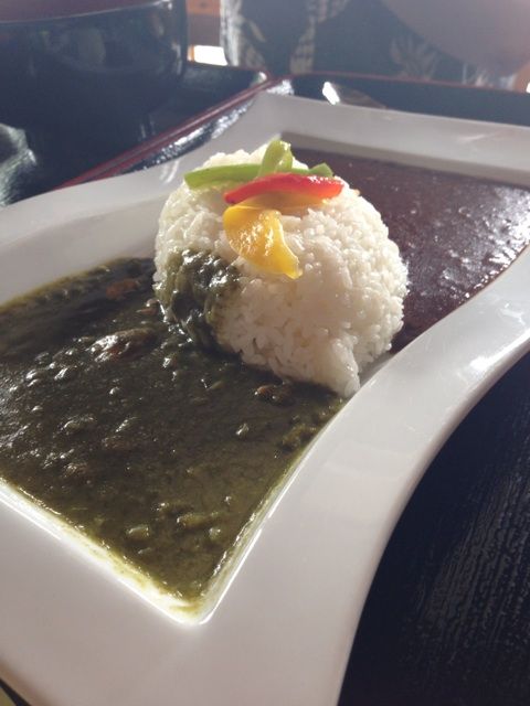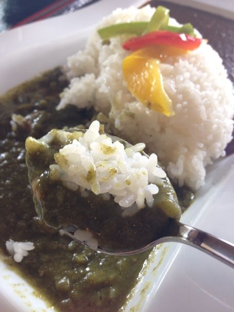 緑色のカレールゥが当然「わさびカレー」なのですが、ココナッツミルクで整えられたその味はタイカレーの「グリーンカレー」的な風味でした。