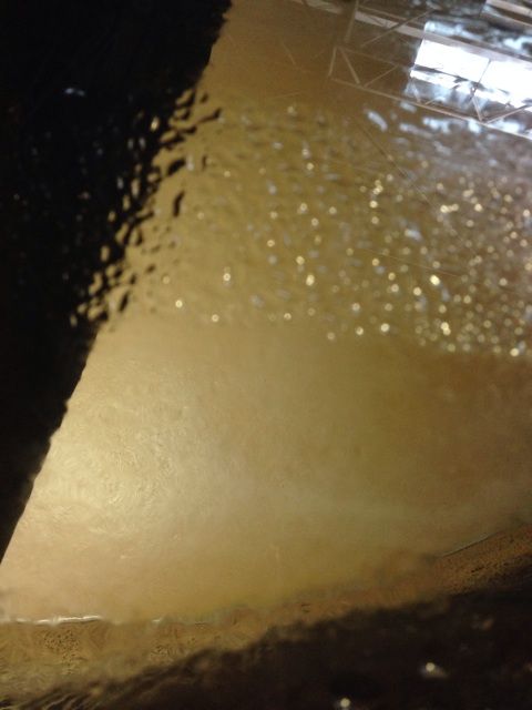 麦汁がぶくぶくと発酵しています。