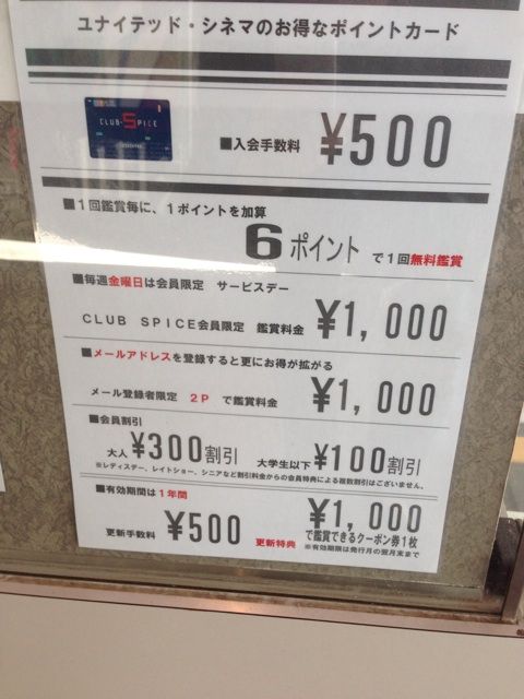 そんな「映画の値段論」は昔から尽きませんが、もしご近所に「ユナイテッド・シネマ」劇場があるならば、「ユナイテッド・シネマ」のメンバーズカード「クラブ・スパイス」がオススメですよ。
