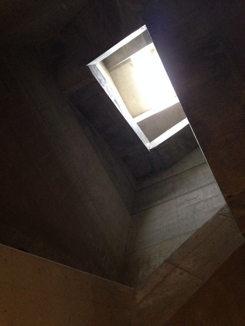 ぐるぐると螺旋状の階段を約100段下り、一番最深部で入口を見上げたところ。