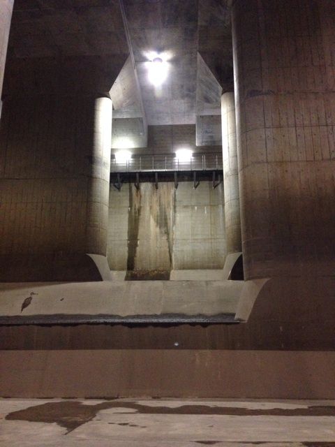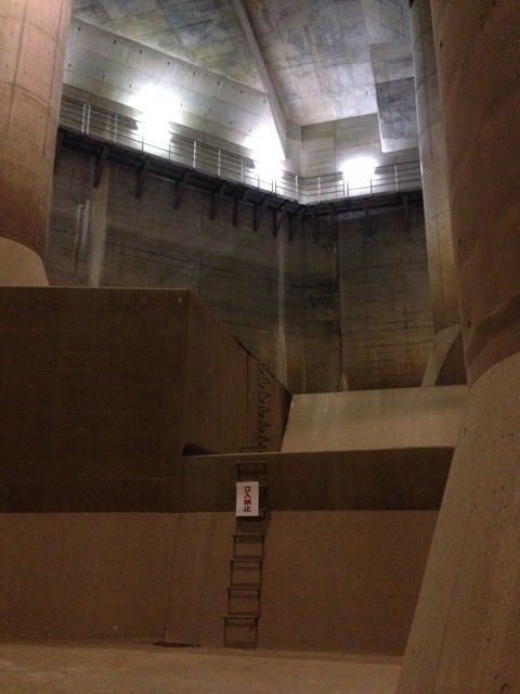ここは水が流れ込み、水害に備えて雨水川水が貯められる「調圧水槽」。