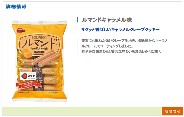 しかしなんですか、期間限定じゃない定番商品になったのかな、パッケージにも「期間限定」って書いてないしな……とブルボンの公式サイトに行ってみると、