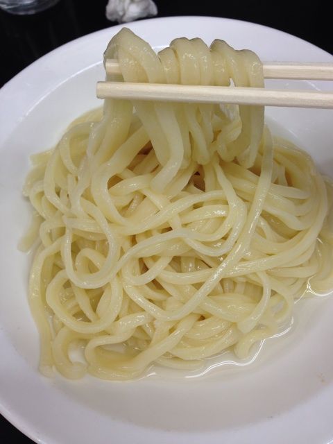 で、少しだけ縮れていて、つるっともちもち。冷やして締められているのでコシもいいです。