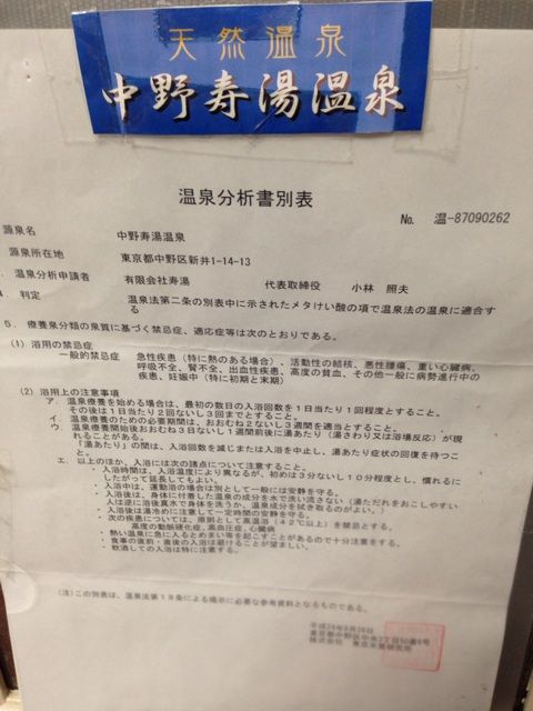 看板の下には、中野で唯一の天然温泉と認められた旨の、中野区のフリーペーパーで紹介された記事も貼ってありました。