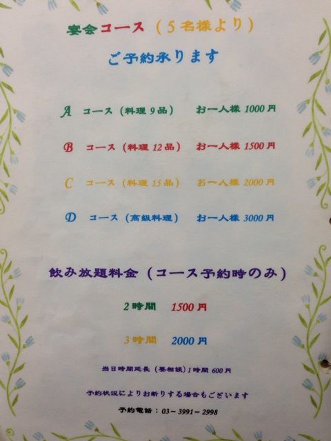 私の記憶が確かならば、私が通っていた当時は「Aコース(料理7品/ひとり1,000円)」だったような気がします。