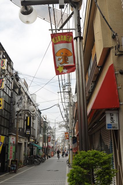 線路に直行した北と南に伸びる商店街が「都立家政商店街」。