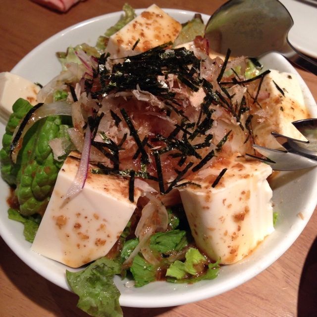 「豆腐サラダ」やチーズがけトマト鉄板焼き(メニュー名失念)をビールで流し込んでいると……