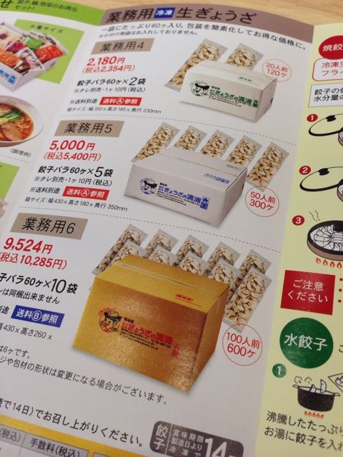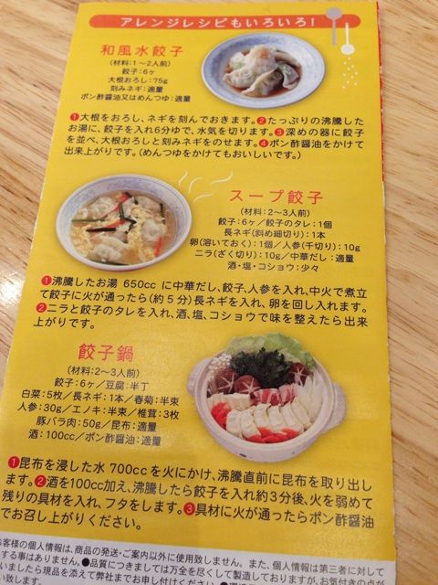店頭に置いてある宅配案内パンフレットには、水餃子のレシピから、