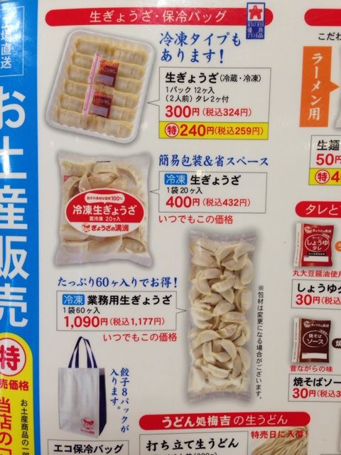 満洲は「お土産(冷凍・冷蔵)生ぎょうざ」の販売をしています。