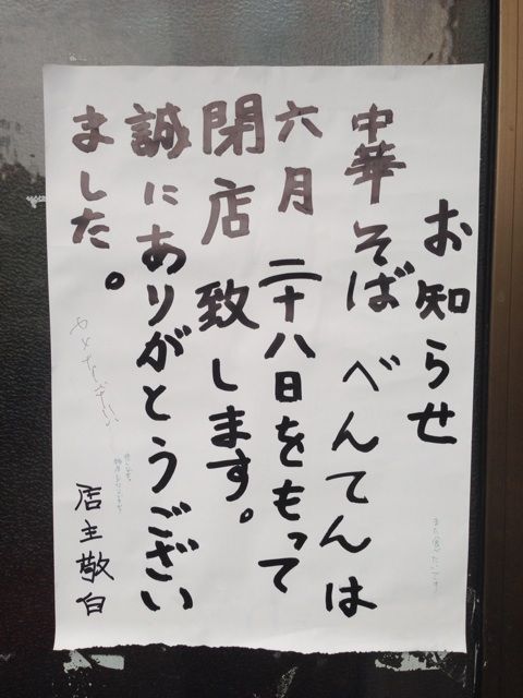 今日、6月24日。べんてんが閉店する4日前。実際並んで食べてみました。