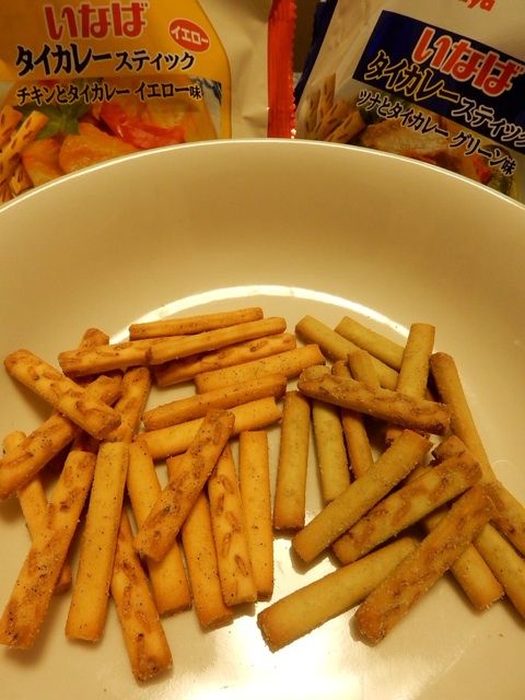 なぜか「※この商品にはツナは入っておりません。」と注意書きがあるのは「ツナとタイカレースティック」のみで、「チキンとタイカレースティック」には「チキンは入っておりません。」との文言が見えないのは、なんででしょうね。