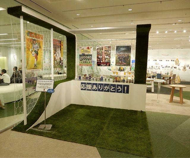 日本代表を応援して来たキリンの、これまでの応援グッズの一部が展示されています。