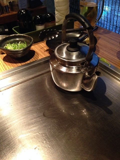 厨房で焼かれていた「どろ焼き」を、ちりとり鍋のようなものでテーブルまで運び、