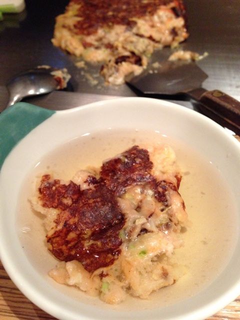 それをソースやマヨネーズではなく、出汁で食べるのは、むしろ「どろ焼き」発祥エピソードの「たこ焼き」というよりは「明石焼き(玉子焼き)」。